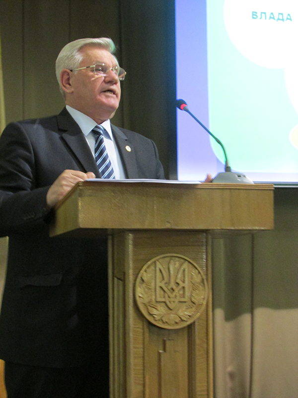 З доповіддю «Перспективи енергетичної незалежності України» виступив ректор Івано-Франківського національного технічного університету нафти і газу академік НАН України Євстахій Іванович КРИЖАНІВСЬКИЙ – член Ради Західного наукового центру.